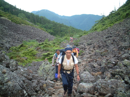 歩きにくいゴーロ帯の向こうに仙丈ケ岳が見えてきた |