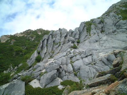 甲斐駒の中腹の花崗岩の岩肌。奇怪な生き物のよう |