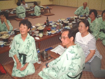 最後の宿の仙流荘で夕食後はカラオケ大会。 |