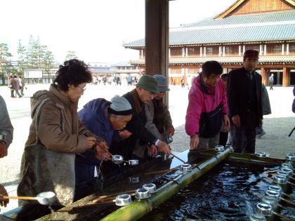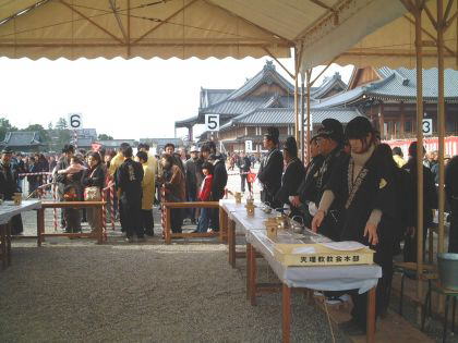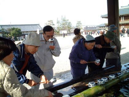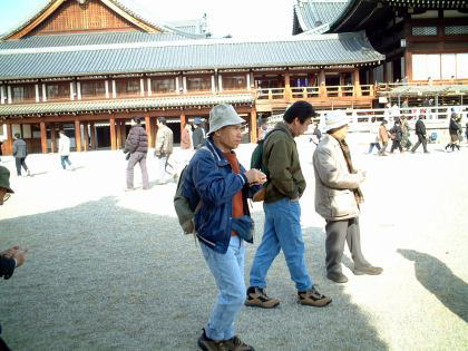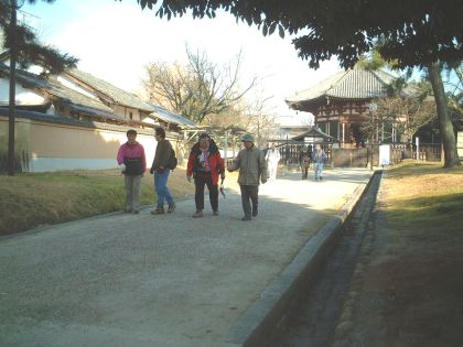 奈良から天理まで約10キロ程歩き、天理教教会本部で雑煮の食べ放題?に挑戦の山歩会の例会も今年で3回目。今年は穏やかな好天に恵まれて、参加の8人の足取りも軽く天理まで3時間余りを楽しく歩く。雑煮でお腹をふくらませた後は、新年会で西大寺まで行く。西大寺には、少し腹ごなしもかねてJR奈良駅から、途中平城宮跡で朱雀門も見学して1時間ほど歩いた。