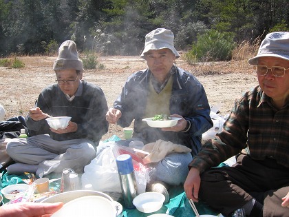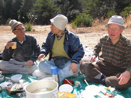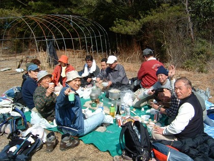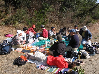 2006年の山開きは好天に恵まれ、着込んだままで 太陽に当たっていると汗ばむほどで、楽しい会話も はずみ、12時過ぎ より3時間はあっという間に過ぎて しまった。帰りは アルプス登山口のバス停の前の広 場で2次会。 昨年は雪がチラチラ降っていた事を思うとうそのよう な暖かさで、ノンビリとバス待ちの時間がつぶせた。 石山の駅前でも反省会をやり、今年の山歩会のあり 方や計画など、タップリと話し合う? それにしても。毎回楽しい会が開けるのも皆さんの おかげです。健康に留意して今年も山歩会で山歩き やサイクリングを楽しみましょう。 |