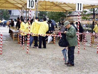 は少し汗ばむくらいで、商店街のいつも混雑す る通りは今年も人は多いのですが雨のせいか例年より少し少なく、人と肩がぶつかりあう ような事もなくスムーズに天理教会本部に行く事ができました。 お節会会場の入り口もいつもは並んで順番待ちですが、今年は待たずにそのまま受付の お神酒を頂いてすぐに会場へ入る事が出来ました。 |