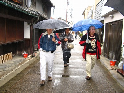 情緒ある春雨のような小雨の中を、「春雨じゃー濡れていこう」 と