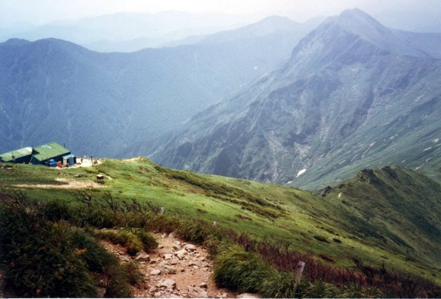 谷川岳肩ノ小屋と右が谷川岳(オキの耳)