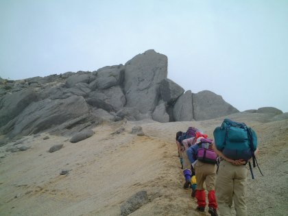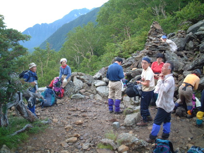 山頂近くのB班の人たち |