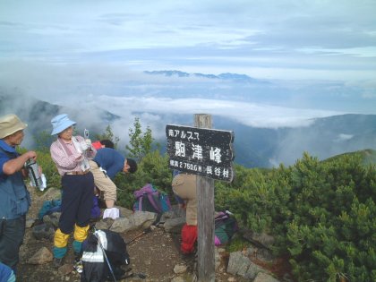 駒津峰山頂。遠く北アルプス方面も時どき見えた |