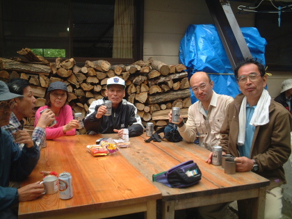 長衛荘テラスにて。天気予報が外れていい山歩きが出来ました乾杯! |