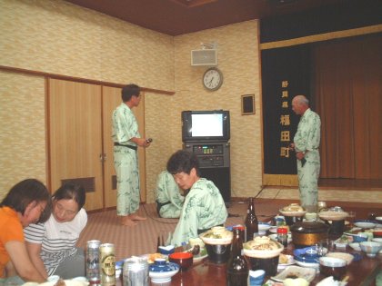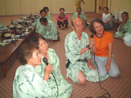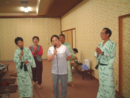 最後の宿の仙流荘で夕食後はカラオケ大会。 |