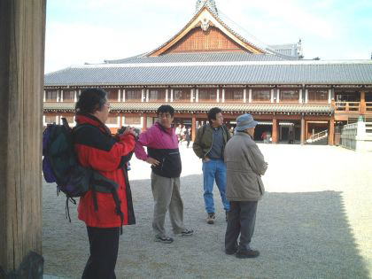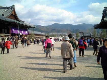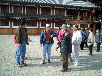 奈良から天理まで約10キロ程歩き、天理教教会本部で雑煮の食べ放題?に挑戦の山歩会の例会も今年で3回目。今年は穏やかな好天に恵まれて、参加の8人の足取りも軽く天理まで3時間余りを楽しく歩く。雑煮でお腹をふくらませた後は、新年会で西大寺まで行く。西大寺には、少し腹ごなしもかねてJR奈良駅から、途中平城宮跡で朱雀門も見学して1時間ほど歩いた。