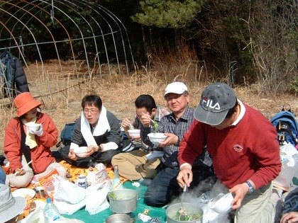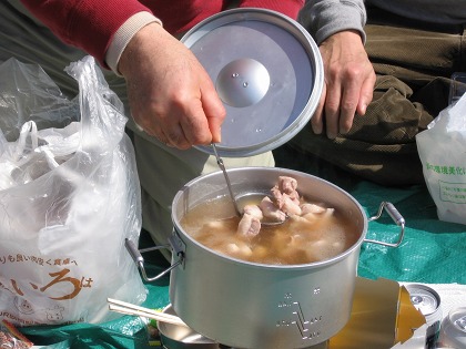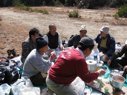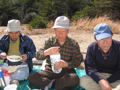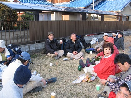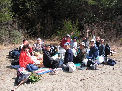 2006年の山開きは好天に恵まれ、着込んだままで 太陽に当たっていると汗ばむほどで、楽しい会話も はずみ、12時過ぎ より3時間はあっという間に過ぎて しまった。帰りは アルプス登山口のバス停の前の広 場で2次会。 昨年は雪がチラチラ降っていた事を思うとうそのよう な暖かさで、ノンビリとバス待ちの時間がつぶせた。 石山の駅前でも反省会をやり、今年の山歩会のあり 方や計画など、タップリと話し合う? それにしても。毎回楽しい会が開けるのも皆さんの おかげです。健康に留意して今年も山歩会で山歩き やサイクリングを楽しみましょう。 |
