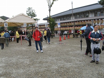 は少し汗ばむくらいで、商店街のいつも混雑す る通りは今年も人は多いのですが雨のせいか例年より少し少なく、人と肩がぶつかりあう ような事もなくスムーズに天理教会本部に行く事ができました。 お節会会場の入り口もいつもは並んで順番待ちですが、今年は待たずにそのまま受付の お神酒を頂いてすぐに会場へ入る事が出来ました。 |