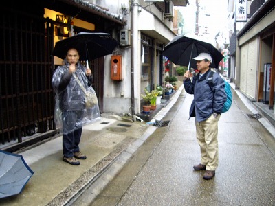 情緒ある春雨のような小雨の中を、「春雨じゃー濡れていこう」 と